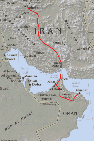 The Iranian police had stopped us and did not allow us to continue further south as there was a danger of kidnapping by smugglers running drugs from Afghanistan. There was no other solution than to load the camels on the back of the logistics truck and to drive the remaining part of Iran, via Yazd, Rafsanjan, Shahr Babak, and Sirjan to Bandar Abbas. There we loaded the truck, with the camels on board, onto a landing craft which took us to the other side of the Persian Gulf, to Ras al Khaimah.