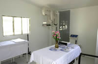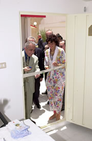 The woman’s clinic in Palmyra, was made possible with the sponsorship money collected with the ‘Caravan for Cancer’ expedition. The clinic consists of two parts: a mobile clinic installed in a 4WD vehicle, donated by the European Union, and a building constructed with the funds raised by Lilianne. This clinic, run by the Syrian Arab Red Crescent Society, contains a mammograph machine, donated by the Dutch Cancer Society. Midwives, and sometimes a doctor, travel through the desert around the provincial capital of Palmyra, accompanied by nurses. They visit the Bedouin encampments. There they will undertake a health screening of the women in the camp, while also providing general hygiene advice. If there is any indications of illness, the head of the household will be asked to take his woman folk along to the city the next time that he goes to the market. There the lady in question can be examined and treated in much more professional surroundings. The photo on the left shows Lilianne opening the Palmyra clinic with the Minister of Red Crescent Affairs.
